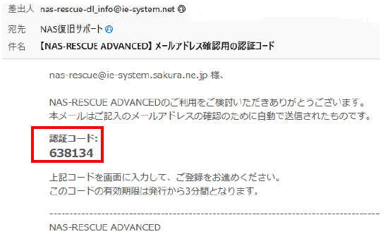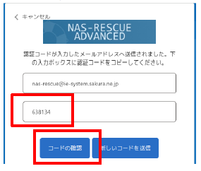 メールに表示されている「認証コード」を入力して、「コードの確認」をクリックします。