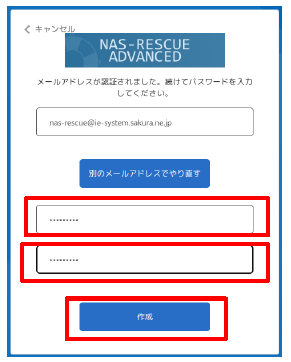 入力したメールアドレスに、認証コードの書かれたメールが届きます。(数分経過してもメールが届かない場合、別のメールアドレスをお試し下さい)