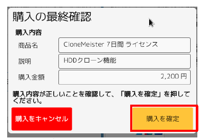 ライセンスを購入するには、「ライセンス購入」ボタンをクリックします。