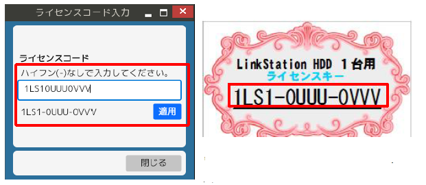同梱のカードに印刷されたライセンスコードをハイフン無しで入力します。
