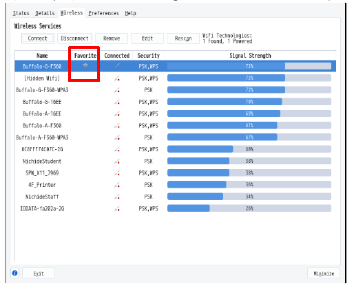 接続が成功すると、「Favorite」にアンテナ・アイコンが表示されます。
