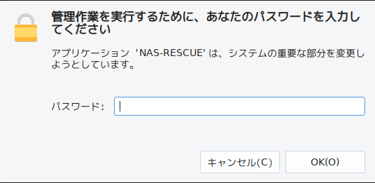 パスワードを入力する画面が表示されたら、「nr」(小文字のエヌ・アール)を入力して、「OK」をクリックします。